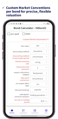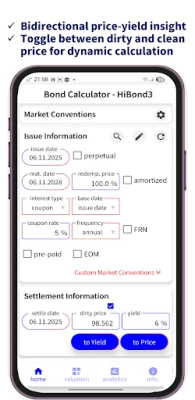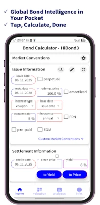 HiBond3 este o aplicație mobilă specializată, esențială pentru profesioniști și investitori. Oferă suport complet pentru o gamă vastă de calcule precise legate de obligațiuni și instrumente financiare conexe, facilitând o analiză aprofundată a investițiilor și decizii informate.