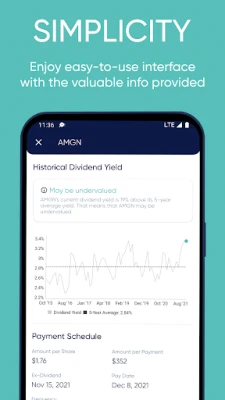 Aprofundează-ți înțelegerea fiecărei acțiuni cu informații detaliate despre dividende, disponibile direct în Dividend Tracker. Vizualizează dividendele recente și viitoare, randamentul curent, randamentul istoric, randamentul la cost și multe alte detalii esențiale care te ajută să iei decizii informate. Indiferent dacă ești la început de drum în lumea investițiilor sau un expert experimentat, Dividend Tracker este construit pentru a fi simplu și intuitiv de utilizat. Ne angajăm să îmbunătățim constant Dividend Tracker cu noi funcționalități, transformându-l într-un partener valoros în călătoria ta investițională. Este important de reținut: Dividend Tracker nu este o platformă de tranzacționare. Misiunea sa este de a-ți oferi informații esențiale pentru a lua decizii înțelepte, ghidându-te cu încredere pe piața bursieră.
