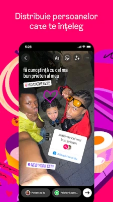 Oferă o fereastră către lumea ta. Fii la curent cu noutățile prietenilor prin actualizări rapide, care dispar după o zi, și notițe spontane. Creează spații intime pentru discuții de grup și împărtășește clipe autentice cu cercul tău de încredere. Reîmprospătează-ți amintirile din evenimente și călătorii direct în Fluxul principal. Transformă momentele efemere în producții dinamice cu Reels, explorând o multitudine de videoclipuri scurte și captivante. Dă o notă personală fiecărei postări cu ajutorul unor șabloane unice, coloane sonore, stickere vesele și filtre artistice.