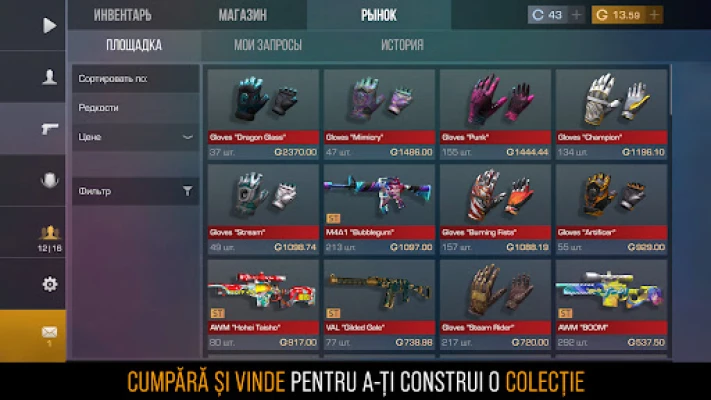 În inima experienței Standoff 2 stă măiestria personală și talentul tău tactic. Controalele rafinate și intuitiv plasate îți permit să execuți manevre complexe cu o lejeritate surprinzătoare, punând accent pe abilitățile tale de jucător. Descoperă un arsenal vast, cu peste 20 de modele de arme, toate disponibile încă de la bun început, fără bariere. Alege-ți echipamentul preferat și personalizează-l cu o gamă impresionantă de skin-uri, stickere și amulete, transformând fiecare armă într-o expresie unică a stilului tău de luptă, gata de a fi etalată pe câmpul de bătălie.