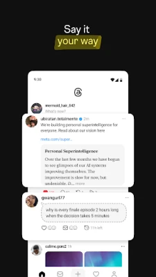 Exprimă-ți liber gândurile și perspectivele, inițiind o nouă discuție pe Threads. Acesta este spațiul tău autentic, unde ai controlul deplin asupra interacțiunilor, decidând cine poate răspunde la postările tale. Angajează-te în conversații, reacționează la comentarii pline de umor, idei perspicace și perspective valoroase de la creatorii pe care îi apreciezi. Threads îți oferă instrumente robuste de personalizare, permițându-ți să gestionezi cine îți vede conținutul, cine poate răspunde la discuțiile tale sau cine te poate menționa. Conturile blocate pe Instagram se transferă automat, iar respectarea acelorași Linii Directoare ale Comunității asigură un mediu sigur și autentic pentru toți utilizatorii.